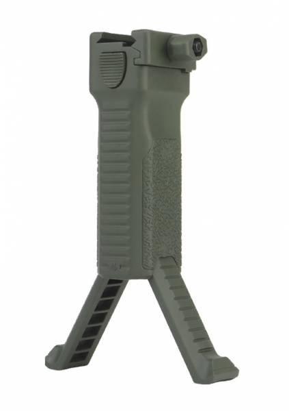 Poignée avant Tactical Ops pour rail Picatinny se transformant en bipied d' appoint d'une simple pression avec déploiement automatique sur ressort. Utile pour mettre un petit coup de distance à l'improviste ...