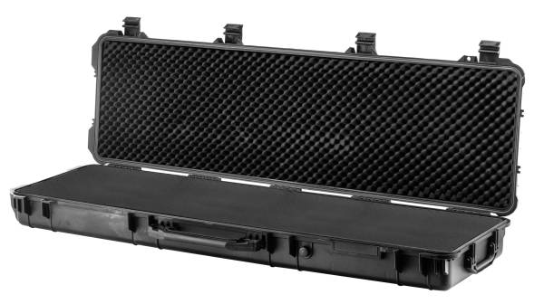 Mallette FOT en ABS noir étanche, IP 55 pour transport et protection de votre arme. Dimensions 111 X 40 X 15 Cms. 2 poignées, 2 roulettes, valve de décompression, mousse épaisse pour tenue de l' arme.