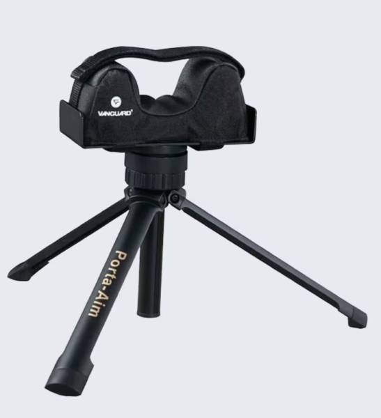 Banc de tir tripode Vanguard modèle Porta - Aim - U, réglable de 190 à 280 millimètres. Coussin repose - fût anti - vibration à revêtement anti - dérapant, blocable par serrage. Orientable à 360 degrés, réglage rapide de la hauteur. Poids 900 grammes. Un accessoire utile pour régler et tester vos optiques ... ou tirer assis sur table.