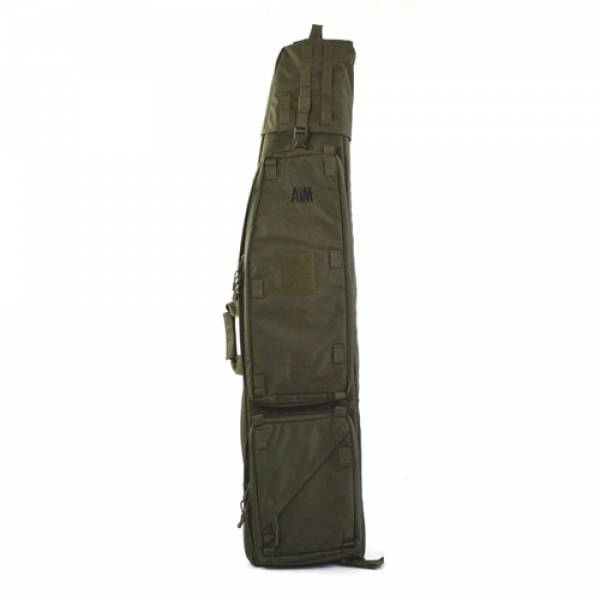 Drag - Bag de chez AIM en Cordura 1000 Deniers, dimensions 135 X 30 Cms extérieur ( et 130 X 25 int. ). Compartiment principal équipé de 3 sangles de maintien de l'arme et passants pour accessoires et petit matériel. Ses trois poches extérieures vous permettront de loger munitions, modérateurs, télémètre et autres accessoires indispensables ne devant pas quitter l' arme. Pourvu de poignées centrales, de deux bretelles " sac à dos " et d' une poignée de trainage ( pour les approches discrètes ), il répondra à toutes les situations. Excellente protection de l'arme. Un des des plus solides du marché.