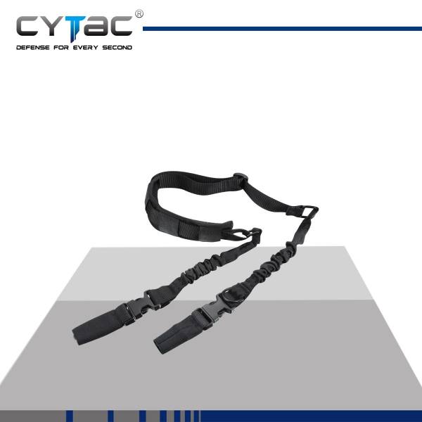 Sangle tactique CYTAC à 2 points, ergonomique et hautement fonctionnelle avec épaulière. En Cordura noir, 2 attaches à dégrafage rapide.