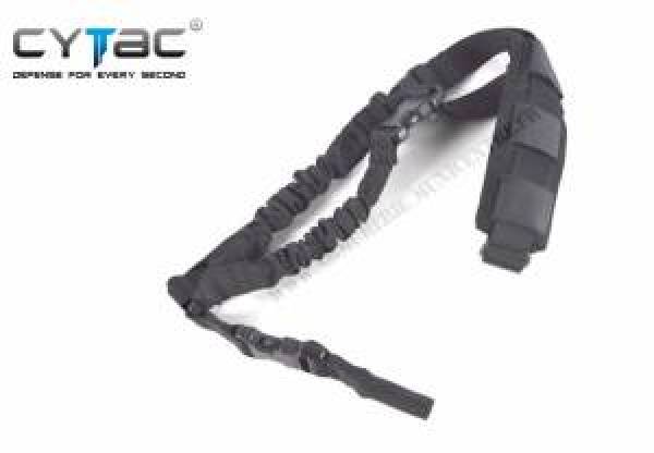Sangle tactique CYTAC à 1 point, ergonomique et hautement fonctionnelle avec épaulière. En Cordura noir, 3 attaches à dégrafage rapide.