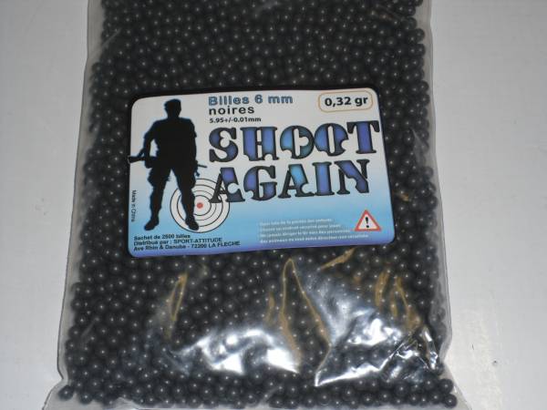 Article : Billes SHOOT AGAIN 6 MM 0,32g X 2500.