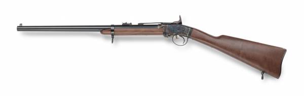 Carabine Pietta modèle Smith version Artillery calibre 50 à poudre noire. Anneaux grenadières avant et arrière pour bretelle, carcasse jaspée, crosse en noyer, finition du canon bronzé. Longueur canon 56 centimètres à 8 rayures au pas de 1 / 66 pouces, longueur totale 99 centimètres, poids 3,5 Kgs. Catégorie D, vente libre aux majeurs, CNI obligatoire. LIVRÉE AVEC UN BLISTER DE 4 DOUILLES LAITON ADAPTÉES.