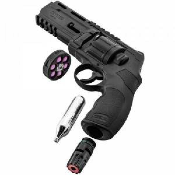 Révolver Umarex T4 E TR 68 Home Défense Révolver à CO² et projectiles caoutchouc calibre .68 ( 17,2 MM ). Barillet à 6 coups, fonctionne sur sparklet de 12 grammes de CO² ( contenue dans la poignée ), puissance 16 joules. De quoi mettre un terme à beaucoup d' actes malveillants. Livré prêt à tirer avec 100 billes caoutchouc et 5 sparklets de CO². Catégorie D, vente libre aux majeurs. CNI obligatoire.