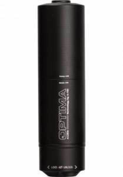 Modérateur de son A - TEC modèle Optima 45 A - Lock, pour tous calibres .22 / 222 / 223. Montage par quart de tour sur bague A - Lock. Longueur totale 160 mm, diamètre 45 mm, poids 285 grammes. Réduction de 29 dB en 223 Rem. Version " FRONT " = pas de recouvrement sur le canon. Idéal pour tous fusils d' assault ou carabines 222 / 223. Catégorie C, vente sur justificatifs.
