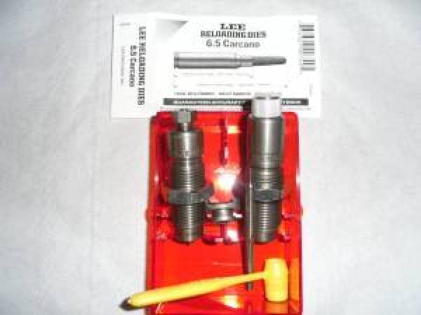 Jeu d' outils Lee à deux matrices, livré avec son shell holder, pour rechargement des cartouches de calibre 6,5 Carcano ... Célèbre calibre qui aurait soit - disant abattu le Président J. F. K. ( selon la version officielle ... )