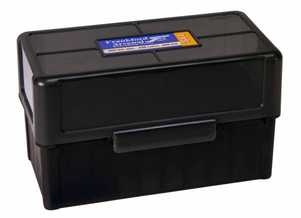 Boite de rangement Frankford Arsenal référence 511 pour 50 cartouches de calibre 300 WM, 7 RM et autres cartouches de taille similaire.