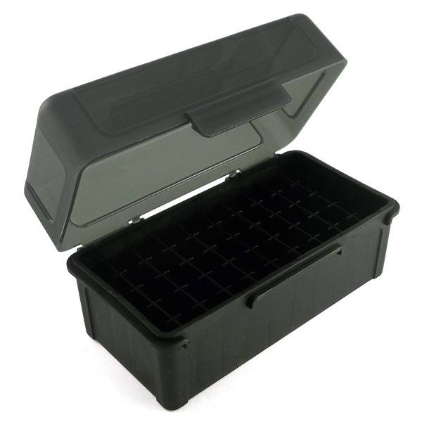 Boite de rangement Frankford Arsenal référence 509 pour 50 cartouches de calibre 308 / 243 / 7.08 / 6,5 Creedmoor et autres cartouches de taille similaire. Nouvelle version avec couvercle sur charnières.