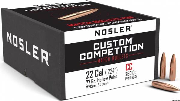Article : Ogives NOSLER Custom Competition .224 / 77 Grains HPBT X 100. W/Can.